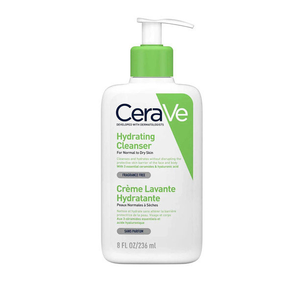 Cerave Hydrating Cleanser For Normal To Dry Skin 236ml is a gentle, hydrating facial cleansing