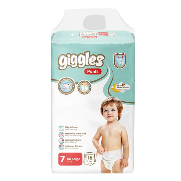 Each pack of Giggles Baby Pants XXL 17+ Kg contains 16 pieces, offering great