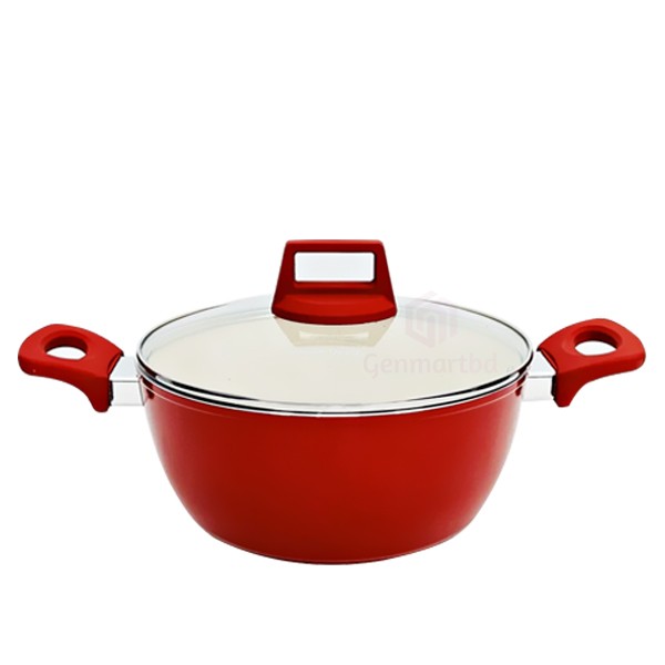 কিয়াম সিরামিক নন-স্টিক ক্যাসেরোল (সস প্যান) কাচের ঢাকনা সহ ২৪ সেমি আইবি