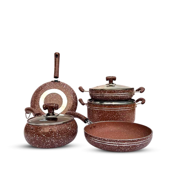 Milk pot 18.5 cm, kadhai 22.5 cm, frypan 24.5 cm, casserole 24.5 cm