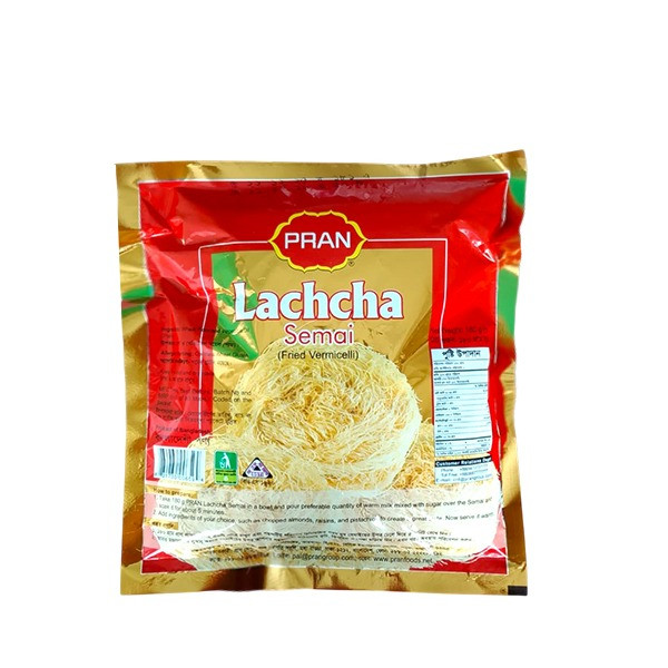 PRAN Lachcha Semai is a premium quality fried vermicelli made from selected wheat flour. It is commonly used to prepare delicious desserts like shemai or semia during special occasions such as Eid al-Fitr and Eid al-Adha. The semai is lightly fried, giving it a rich aroma and making it quick and easy to cook with milk, sugar, and nuts for a tasty traditional dessert.
