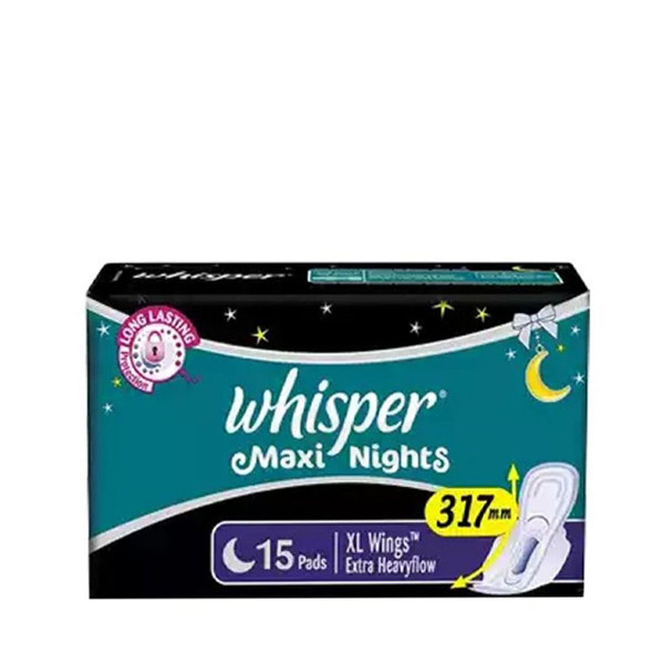 Whisper Maxi Nights XL+ sanitary napkins are designed to provide maximum protection and comfort during heavy flow days and nights. With their extra-long length of 317mm and wider back coverage, these pads ensure all-night protection against leakage. The XL+ wings keep the pad securely in place, while the soft top sheet provides gentle care for sensitive skin.