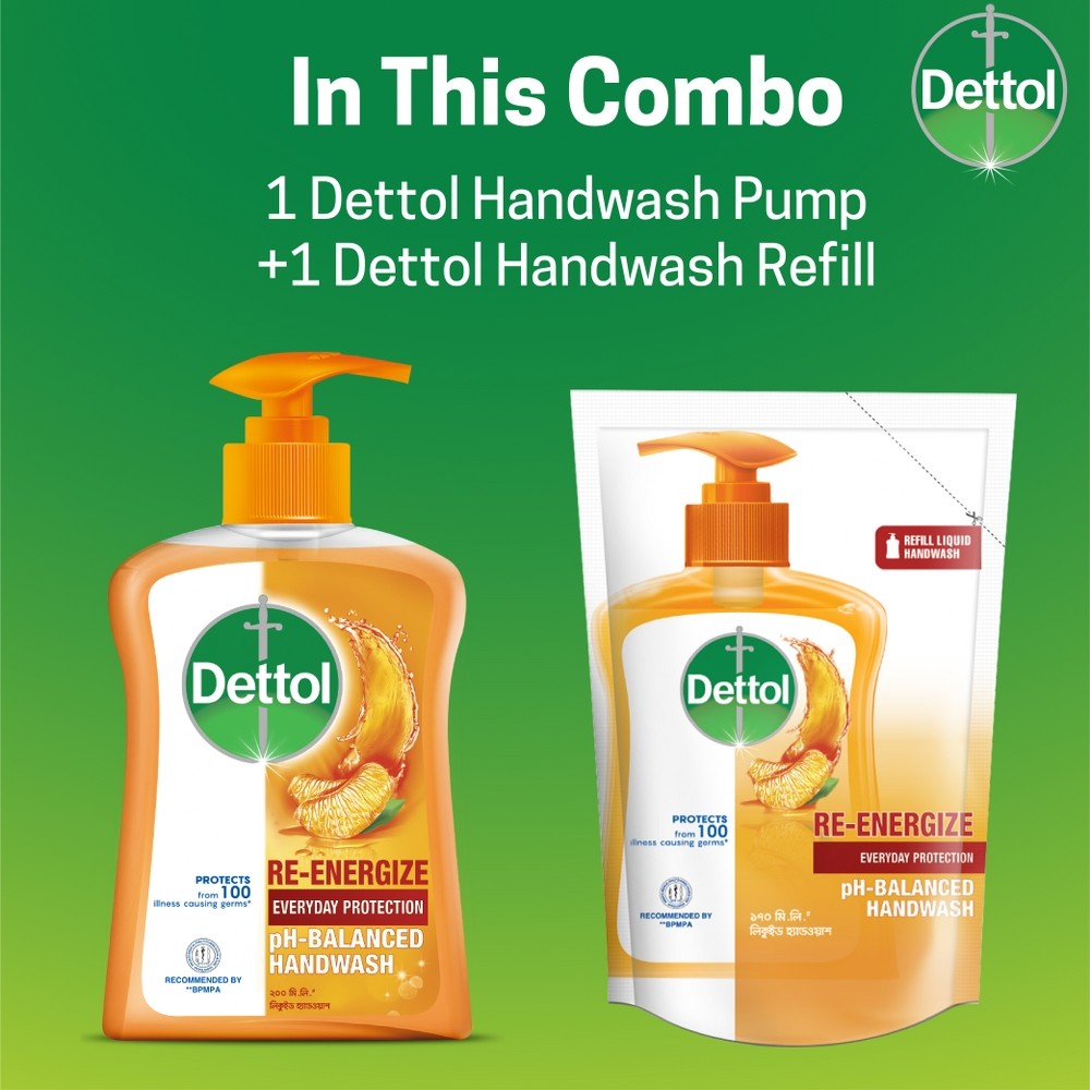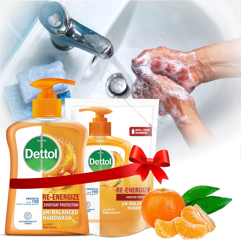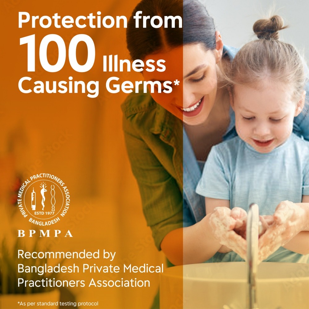 Dettol Handwash provides everyday protection and protects from 100 illness causing germs as per standard testing protocol. Dettol Re-energize handwash contains zesty mandarin fragrance. Daily use of Dettol Handwash keeps your hand clean and germ free. Dettol Handwash Liquid is recommended by Bangladesh Private Medical Practitioners Association.